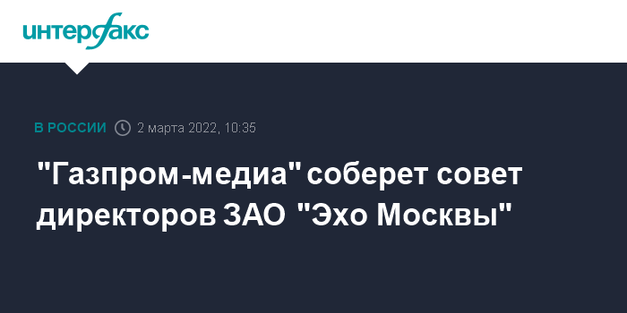 "Газпром-медиа" соберет совет директоров ЗАО "Эхо Москвы"