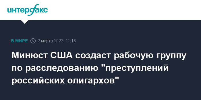 Минюст США создаст рабочую группу по расследованию "преступлений российских олигархов"