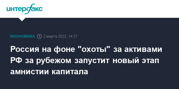 Россия на фоне "охоты" за активами РФ за рубежом запустит новый этап амнистии капитала