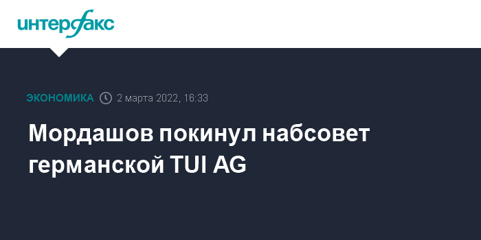 Москва. 2 марта. INTERFAX.RU - Алексей Мордашов покинул наблюдательный совет TUI AG, сообщила туристическая компания в среду.