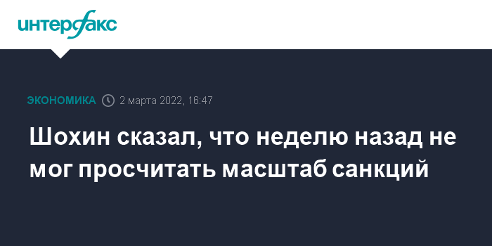 Шохин сказал, что неделю назад не мог просчитать масштаб санкций