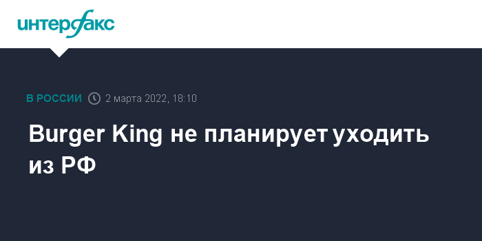 "Данная информация не соответствует действительности. "Бургер Кинг" продолжит работу в России и откроет новые рестораны в 2022 году", - сказал директор по коммуникациям "Бургер Кинг Россия" Иван Шестов (его слова приводятся в сообщении).