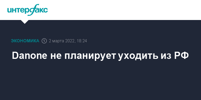 Москва. 2 марта. INTERFAX.RU - Французская Danone, один из крупных производителей молочной продукции, не планирует уходить из России, говорится в официальном заявлении компании.