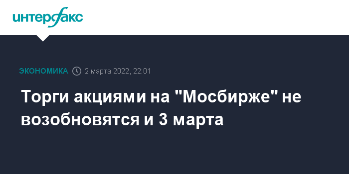 Торги акциями на "Мосбирже" не возобновятся и 3 марта