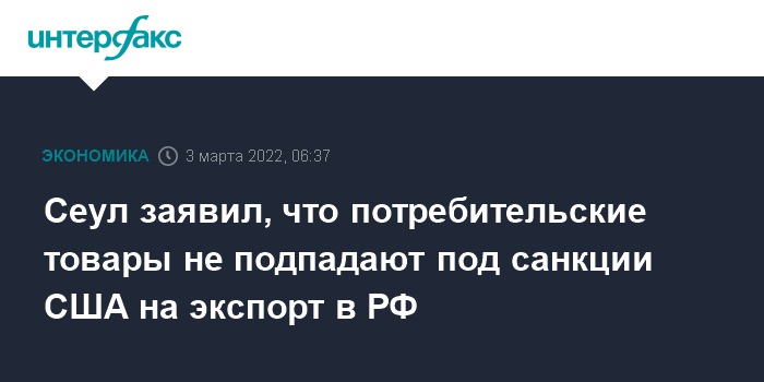 Сеул заявил, что потребительские товары не подпадают под санкции США на экспорт в РФ