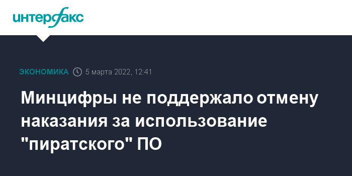 Ранее СМИ сообщили, что в рамках плана первоочередных действий по обеспечению развития российской экономики в условиях внешнего санкционного давления в правительстве обсуждают возможность снятия ответственности за использование нелицензионного ПО.