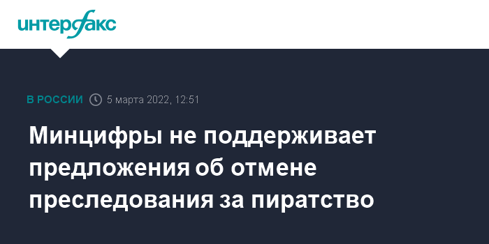 Минцифры не поддерживает предложения об отмене преследования за пиратство