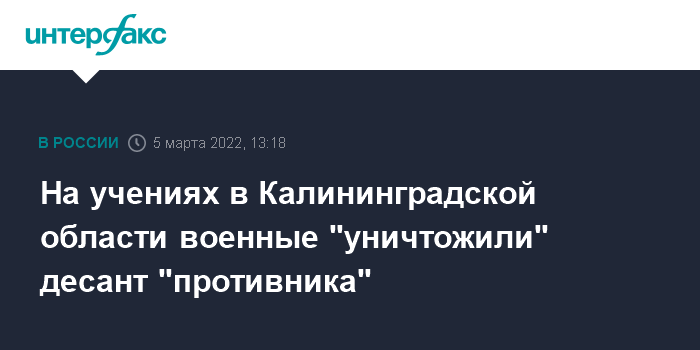 "С помощью беспилотных летательных аппаратов морским пехотинцам удалось обнаружить десантные силы условного противника на подходе к побережью и передать их координаты на командный наблюдательный пункт. В свою очередь, артиллеристы сосредоточенным огнем систем залпового огня "Град" и самоходных артиллерийских установок "Гвоздика" нанесли удар по десантным средствам условного противника в море. А затем и по десанту, осуществляющему высадку на побережье Калининградской области", - сказано в сообщении, распространённом в субботу.