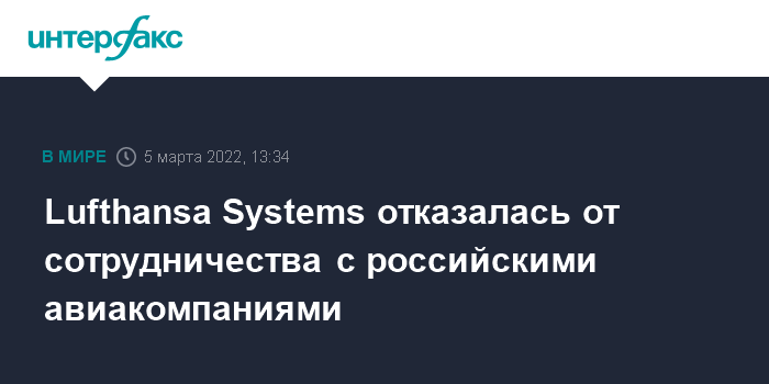 "Мы с беспокойством наблюдаем за нынешними драматическими событиями в российско-украинском конфликте и глубоко тронуты происходящим. Являясь ведущим поставщиком ИТ-услуг, Lufthansa Systems обслуживает около 350 клиентов международных авиакомпаний. Из них около десяти авиакомпаний - из России. Мы осознаем свою ответственность и действуем в соответствии с введенными санкциями. Поэтому Lufthansa Systems решила прекратить все услуги для российских клиентов", - говорится в письме Lufthansa Systems, подлинность которого подтвердил представитель крупной авиакомпании.