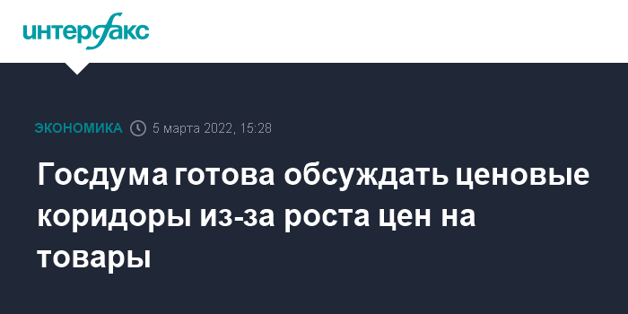 Госдума готова обсуждать ценовые коридоры из-за роста цен на товары