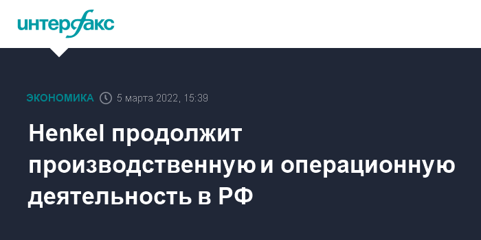 Накануне Henkel заявил, что принял решение заморозить все планы по инвестициям в России, отказаться от рекламы в государственных СМИ и всех спонсорских проектов.