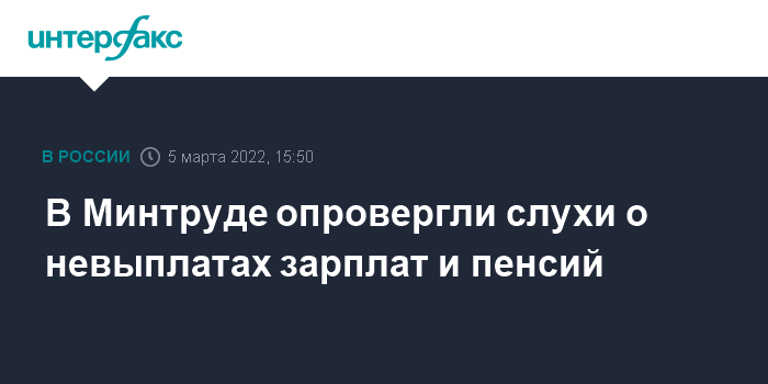 Москва. 5 марта. INTERFAX.RU - Минтруд призвал не верить слухам о том, что в России из-за нехватки средств не выплачиваются зарплаты и пенсии.