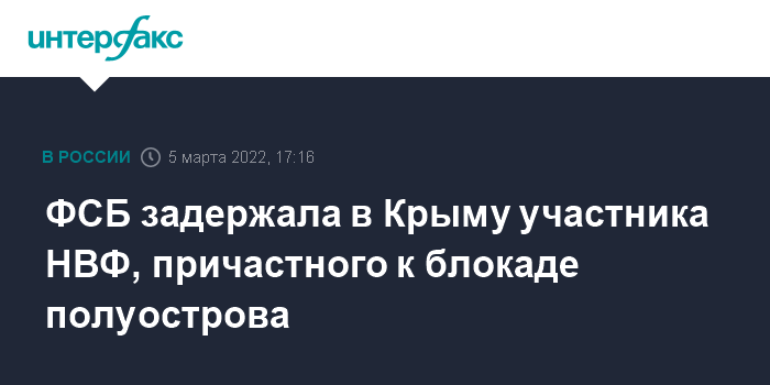 ФСБ задержала в Крыму участника НВФ, причастного к блокаде полуострова