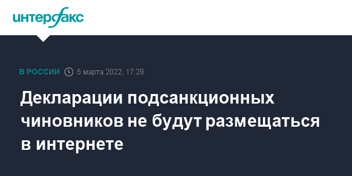 Декларации подсанкционных чиновников не будут размещаться в интернете