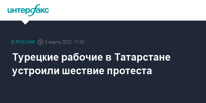Москва. 5 марта. INTERFAX.RU - В Нижнекамске турецкие рабочие 5 марта устроили перед получкой стихийное шествие протеста против пересчета их зарплаты из валюты в рубли по старому курсу. В интернете появилась видеозапись инцидента, на которой видно, как более ста рабочих идут по производственной площадке с громким свистом и криками.