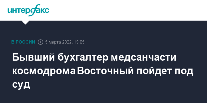 Бывший бухгалтер медсанчасти космодрома Восточный пойдет под суд