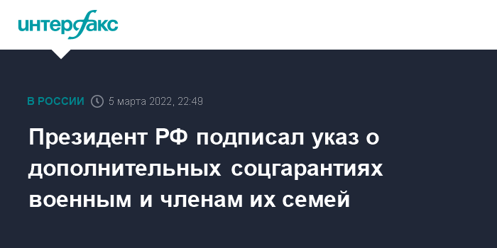 Президент РФ подписал указ о дополнительных соцгарантиях военным и членам их семей