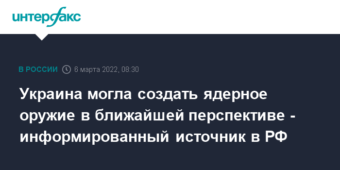 Москва. 6 марта. INTERFAX.RU - Информированный источник в одном из компетентных ведомств РФ сообщил, что заявление президента Украины Владимира Зеленского на Мюнхенской конференции по безопасности в феврале о возможностях обретения Украиной ядерного статуса было не случайным.