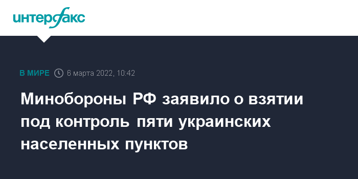 Минобороны РФ заявило о взятии под контроль пяти украинских населенных пунктов