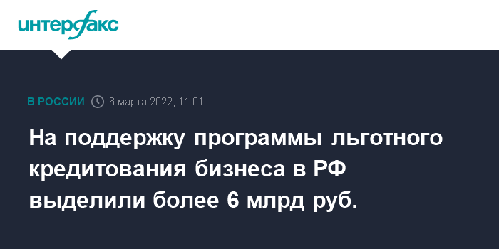 На поддержку программы льготного кредитования бизнеса в РФ выделили более 6 млрд руб.