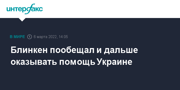 Москва. 6 марта. INTERFAX.RU - Госсекретарь Энтони Блинкен заявил, что США и далее будут оказывать помощь Украине.