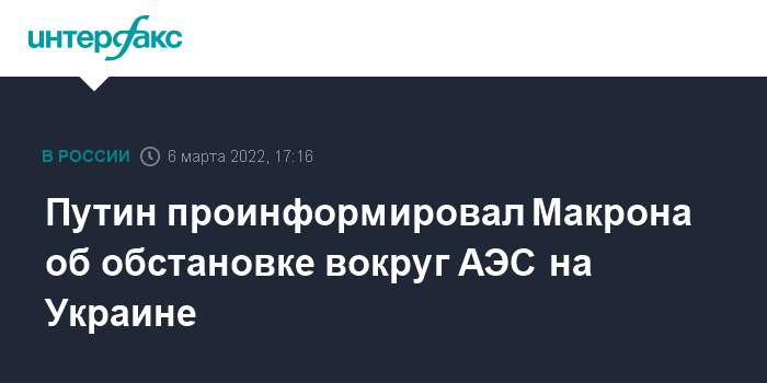 "Комментируя упомянутое президентом Франции предложение Гендиректора Международного агентства по атомной энергии о проведении в чернобыльской зоне трехсторонней (МАГАТЭ - Россия - Украина) встречи для выработки механизма обеспечения безопасности ядерных объектов на Украине, Владимир Путин отметил, что в принципиальном плане эта идея может быть полезной, но стоило бы подумать над тем, чтобы провести такую встречу в формате видеоконференции или в третьей стране", - говорится в сообщении.