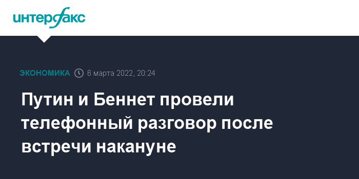 Накануне пресс-служба Кремля сообщила, что 5 марта по взаимной договоренности состоялся краткий рабочий визит в Москву Беннета. "Президент Российской Федерации Владимир Путин провел с Нафтали Беннетом переговоры, в ходе которых обсуждались различные аспекты ситуации на Украине в контексте специальной военной операции России по защите Донбасса", - говорилось в сообщении.