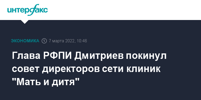 Глава РФПИ Дмитриев покинул совет директоров сети клиник "Мать и дитя"
