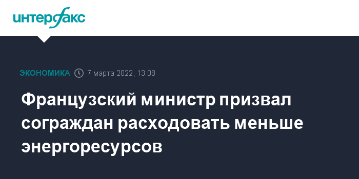 Москва. 7 марта. INTERFAX.RU - Жителям Франции следует постараться снизить расходы энергии, заявил в понедельник французский министр экономики Брюно Ле Мер.