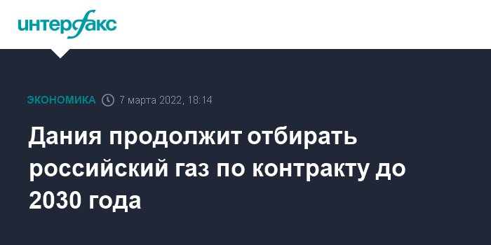 Дания продолжит отбирать российский газ по контракту до 2030 года