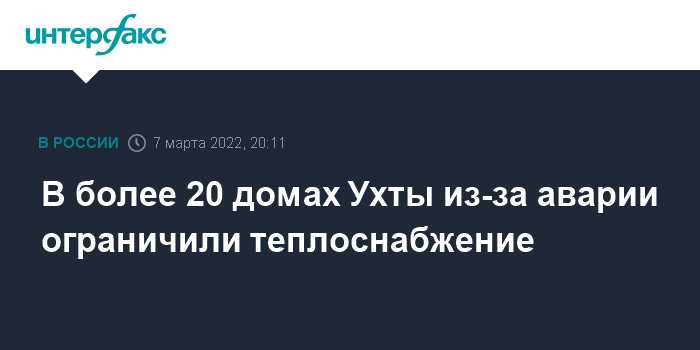 Москва. 7 марта. INTERFAX.RU - В Ухте (Коми) устраняют последствия аварии на трубопроводе, из-за которой в понедельник ограничили подачу тепла в 28 объектов, в том числе 22 многоквартирных дома, сообщает пресс-служба местной администрации.