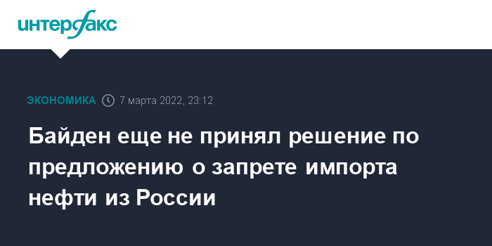 Байден еще не принял решение по предложению о запрете импорта нефти из России