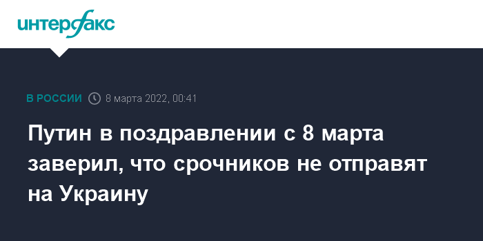 Путин в поздравлении с 8 марта заверил, что срочников не отправят на Украину