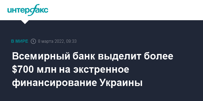 Всемирный банк выделит более $700 млн на экстренное финансирование Украины