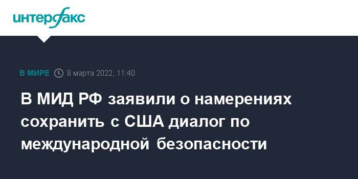 В МИД РФ заявили о намерениях сохранить с США диалог по международной безопасности