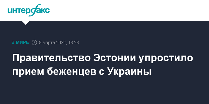 Москва. 8 марта. INTERFAX.RU - Эстония упрощает процедуру получения вида на жительство для беженцев с Украины, с 9 марта они могут подать ходатайство о ВНЖ за один день. Соответствующее распоряжение приняло во вторник правительство республики.
