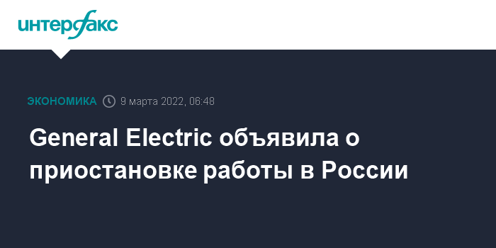 Москва. 9 марта. INTERFAX.RU - Американская General Electric сообщила о приостановке деятельности в России, но намерена продолжать "поддержку" существующих услуг в энергетике, соответствующее объявление концерн разместил в Twitter.