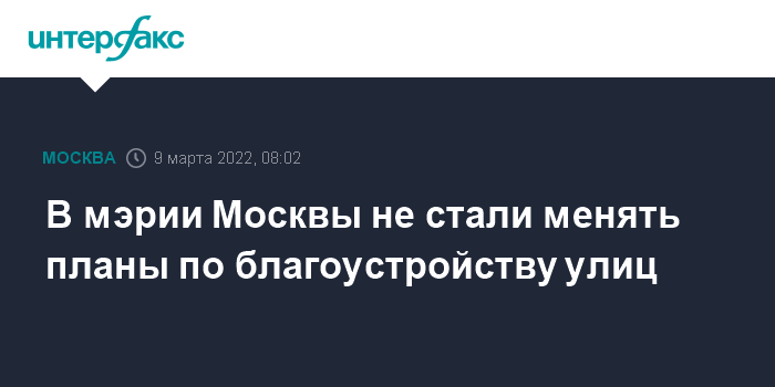 Москва. 9 марта. INTERFAX.RU - Планы по благоустройству улиц и общественных пространств столицы на 2022 год не поменялись, сказал журналистам заммэра Москвы Петр Бирюков.