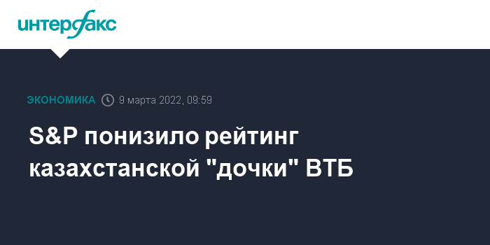 S&P сообщает, что понизило рейтинги казахстанской "дочки" ВТБ вслед за снижением рейтинга его материнской компании: