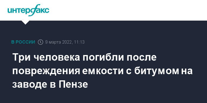 Три человека погибли после повреждения емкости с битумом на заводе в Пензе