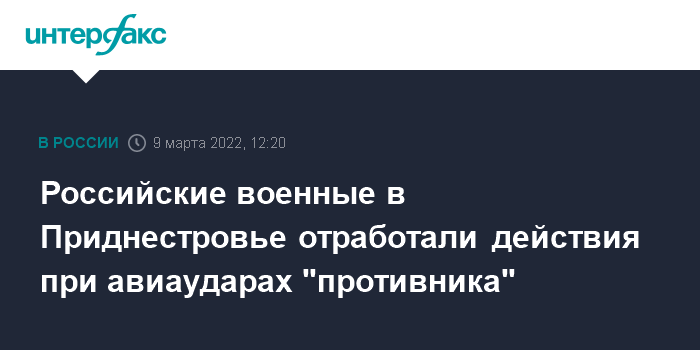 Москва. 9 марта. INTERFAX.RU - Военнослужащие из состава Оперативной группы российских войск в Приднестровском регионе Молдавии (ОГРВ ПРМ) отработали действия при авиаударах условного "противника" и применении им отравляющих веществ, сообщила пресс-служба Западного военного округа (ЗВО).