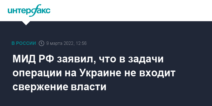 МИД РФ заявил, что в задачи операции на Украине не входит свержение власти