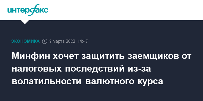 Минфин хочет защитить заемщиков от налоговых последствий из-за волатильности валютного курса