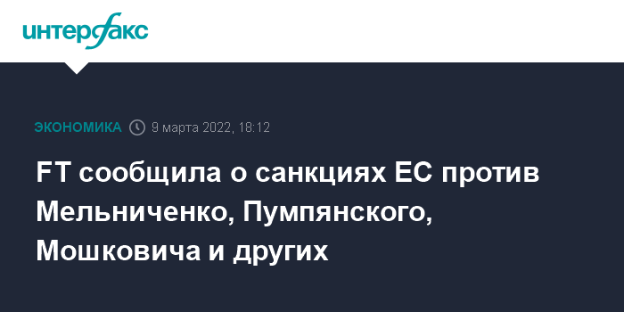FT сообщила о санкциях ЕС против Мельниченко, Пумпянского, Мошковича и других
