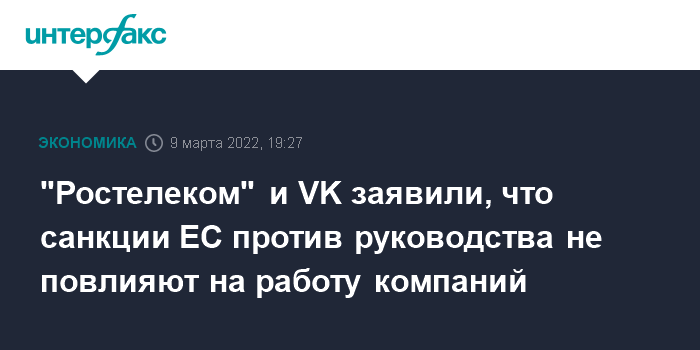 "Ростелеком" и VK заявили, что санкции ЕС против руководства не повлияют на работу компаний