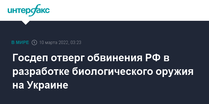 "США не владеют и не управляют никакими химическими или биологическими лабораториями на Украине, они полностью выполняют свои обязательства по Конвенции о химическом оружии и Конвенции о биологическом оружии, а также не разрабатывают и не обладают таким оружием где-либо", - говорится в распространенном Госдепом заявлении Прайса.