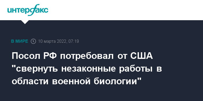 Посол РФ потребовал от США "свернуть незаконные работы в области военной биологии"