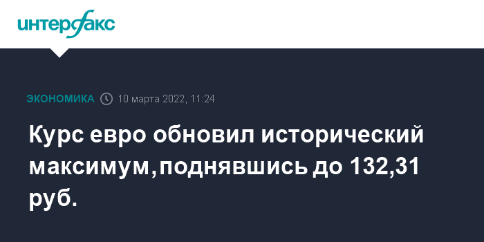 Москва. 10 марта. INTERFAX.RU - Евро и доллар США вновь обновили исторические максимумы в ходе торгов четверга, европейская валюта поднималась в моменте до 132,31 руб./EUR1, доллар рос до 121,5275 руб./$1.