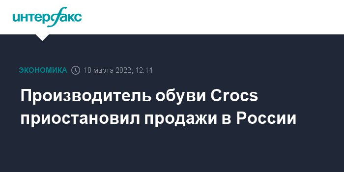 Москва. 10 марта. INTERFAX.RU - Американский производитель обуви Crocs, Inc. принял решение приостановить розничные продажи в РФ.