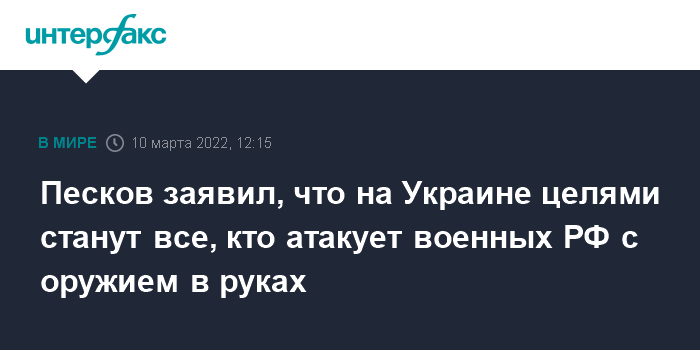 "Поэтому, конечно, если кто-то с оружием в руках будет атаковать наших военных, то они тоже станут целями, конечно", - заявил Песков.